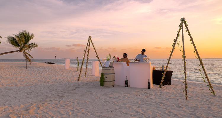 Romantiker aufgepasst ! Hier können Sie sich in paradiesischer Kulisse das JA-Wort geben oder ihr Ehegelübte erneuern. Vielleicht wollen Sie aber auch einfach nur auf Ihre Zweisamkeit anstossen und unter dem Sternenhimmel mit den Füssen im Sand ein exklusives Dinner geniessen. Am nächsten Morgen wartet dann ein schwimmendes Frühstück in Ihrer Poolvilla auf Sie. Ihrer romantischen Ader sind auf Cora Cora Maldives keine Grenzen gesetzt.