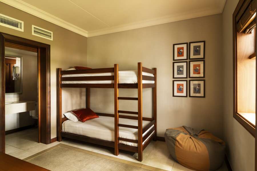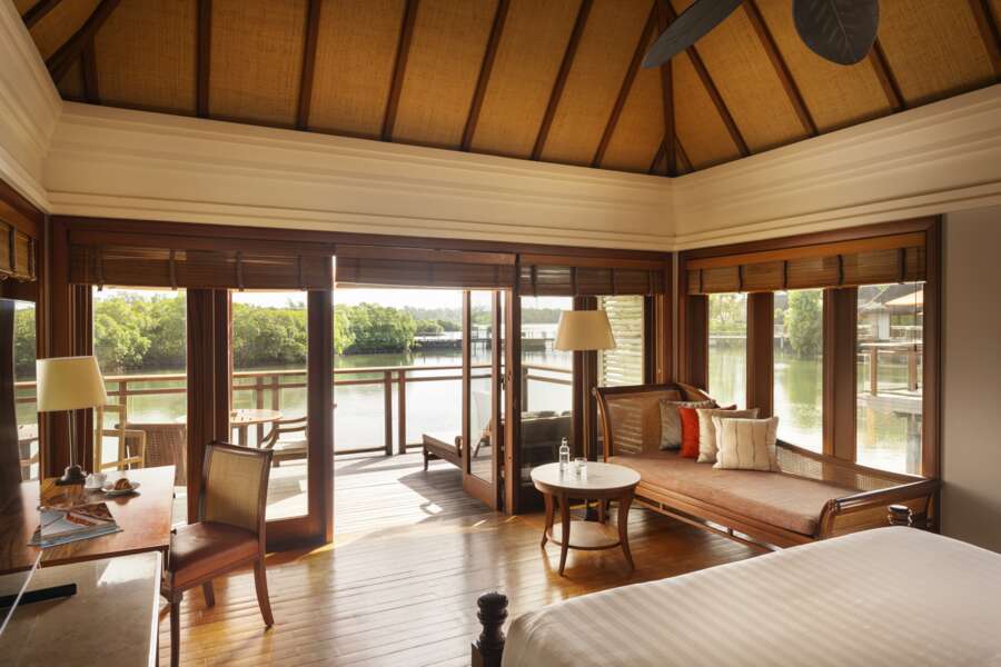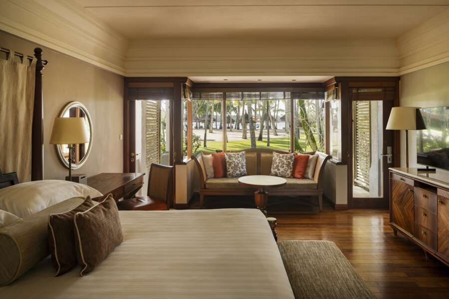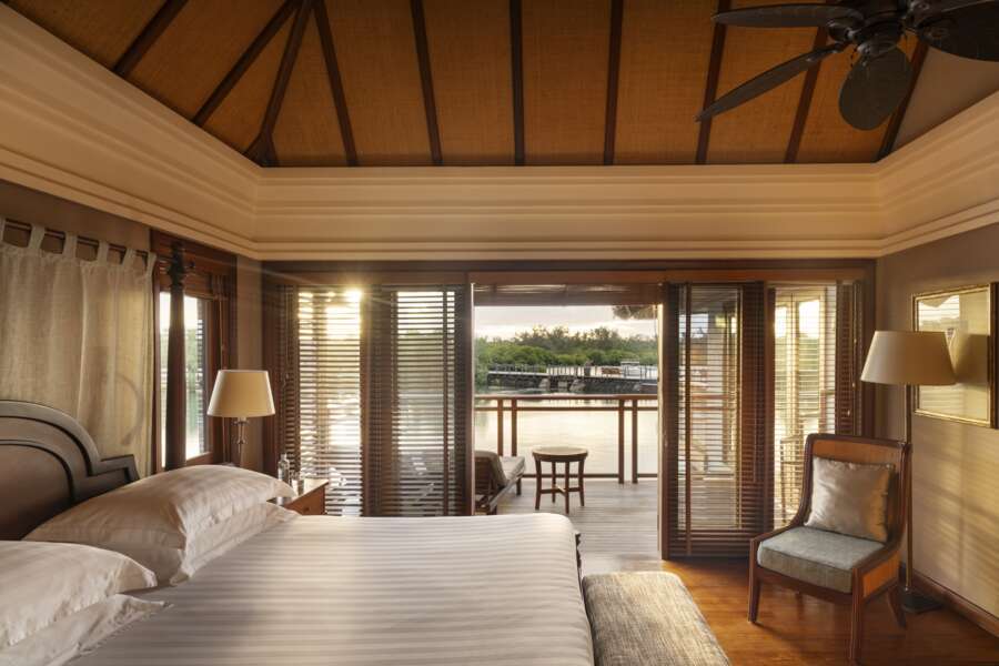 Les 64 Junior Suites spacieuses (70 m²) sont équipées d’une salle de bains avec douche et WC séparés, baignoire, double lavabo, sèche-cheveux, minibar, machine à café Nespresso, coffre-fort, téléphone, TV avec écran plat, système Apple Mac Mini avec videos à la demande, connexion iPod et Wi-Fi gratuit ainsi qu'un grand balcon ou terrasse. 8 Junior Beachfront Suites se trouvent directement sur la plage et 5 suites Junior sont construites sur pilotis au-dessus du lagon. L'hôtel dispose également de 12 Family Suites (86 m²) avec 2 chambres à coucher et un salon. La chambre des enfants (moins de 13 ans) est aménagée d'un lit superposé et d'une petite salle de bains séparée. Ces 12 suites se trouvent à plain-pied ou au premier étage et sont toutes orientées côté mer. \¶ Les 9 Beachfront Villas de plain-pied (130 m²) avec piscine privée chauffée se trouvent directement sur la plage. Elles sont dotées d'une chambre à coucher, salon avec coin repas, WC séparés avec douche, jacuzzi, baignoire extérieure, machine à café Nespresso et grande terrasse. 3 autres villas sont construites sur pilotis au-dessus du lagon (sans piscine). La Princely Villa (350 m²) se compose de deux suites Junior et d'une villa avec deux piscines privées chauffées.
