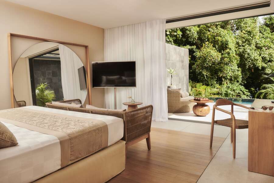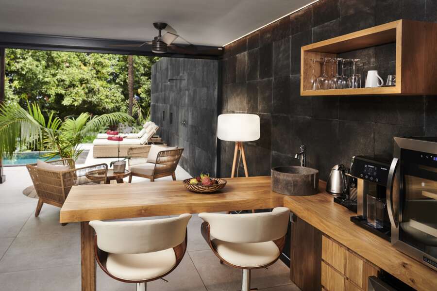 Les 32 chambres Superior (34 m²) et 16 chambres Deluxe (41 m²) sont confortablement aménagées dans un ravissant décor naturel, avec climatisation, TV, machine à café Nespresso, salle de bains, minibar, coffre-fort et balcon ou terrasse. Les 14 suites (8 doubles et 6 pour les familles) et les 3 lodges sont plus grands et plus luxueux et se trouvent dans de ravissants bungalows créoles. Il y a également 5 Pool Lodges avec piscine privée.