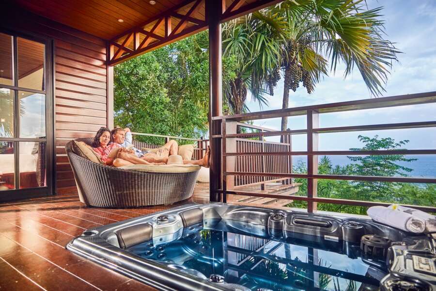 Le complexe comprend une réception, 3 restaurants, un bar, des boutiques, un lounge sur une terrasse en bois sur pilotis avec sol en sable et vue sur Grande Anse, 2 belles piscines (dont une chauffée), un coin de jeux, une salle de fitness et un spa avec hammam et jacuzzi.