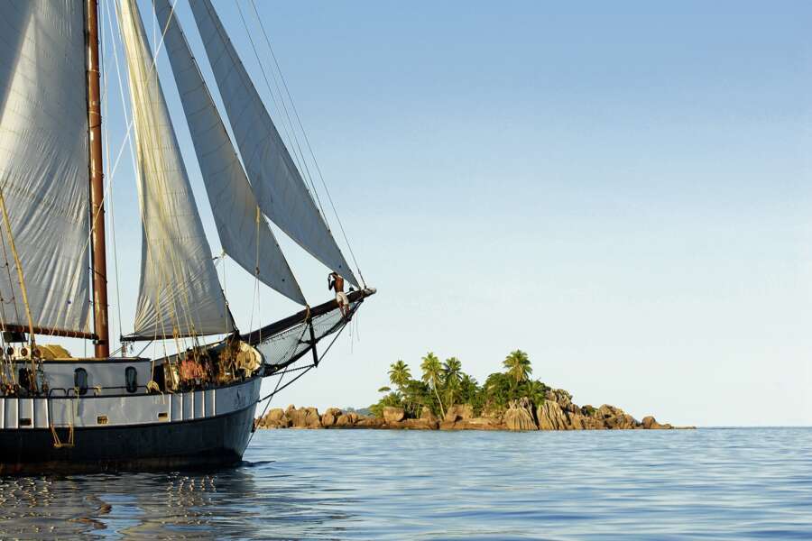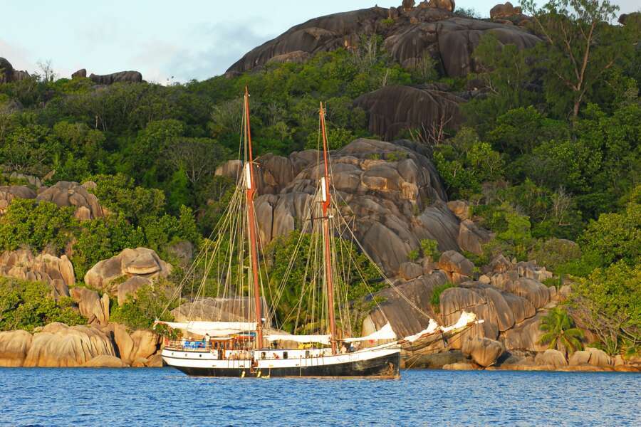 Jetez l'ancre au paradis. Découvrez la diversité des îles principales des Seychelles de la façon la plus confortable et riche en expériences possible. Pas de changement d'hôtels, pas de valises à faire, pas de transferts: sur un voilier traditionnel, vous mettrez le cap chaque jour sur une nouvelle île à découvrir. Dès lors que le vent, la météo et le parcours le permettent, les voiles seront sorties. Un voyage unique pendant lequel vous passerez des journées et des nuits romantiques à bord, vous ferez chouchouter par l'équipage et aurez l'occasion de faire de la plongée.
