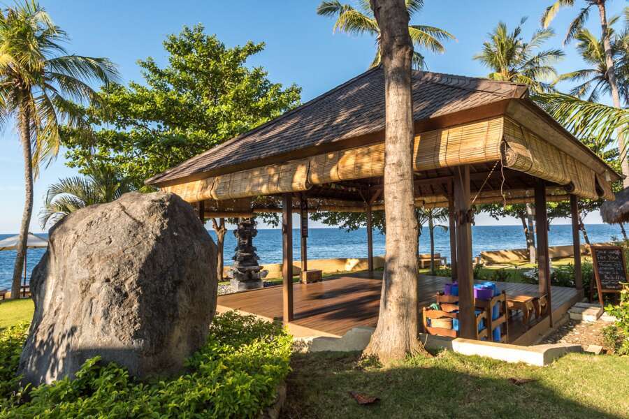 L’hôtel se situe sur un doux versant dans un petit endroit dénommé Kubu. La plage de galets est typique de la côte nord-est de Bali.