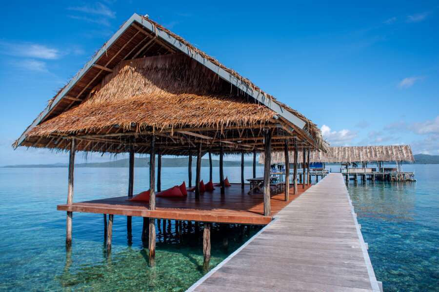 2 heures en bateau rapide depuis l’aéroport de Sorong. Les jours d’arrivée et de retour sont mercredi et dimanche.