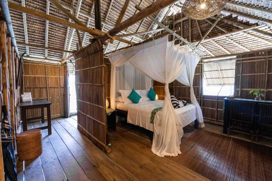Tous les cottages sont construits avec des matériaux naturels dans le style du pays et disposent de ventilateurs au plafond et sont alimentés en électricité 24h/24.