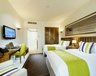 L'hôtel dispose en tout de 54 chambres, suites et appartements élégantes réparties sur 3 étages. Les chambres modernes sont aménagées avec une salle de bains avec douche/WC, climatisation, TV, coffre-fort, mini-bar, sèche-cheveux et balcon privé.