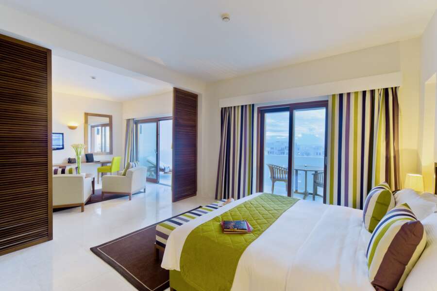 Les Suites Marina ont une vue magnifique sur la marina es les montagnes Hajar et les Suites Deluxe Pool View sont orientées vers la piscine.
