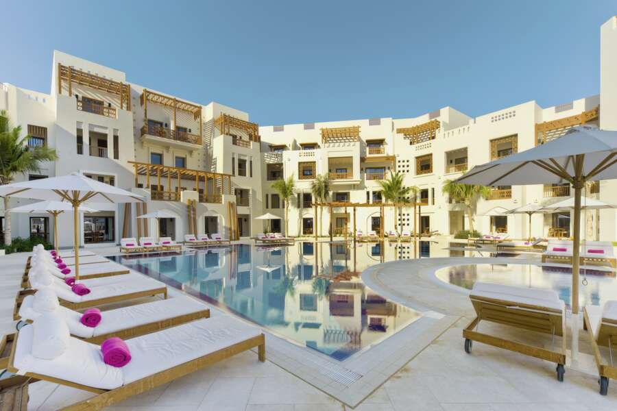 Directement sur la promenade au bord du port de plaisance, l'hôtel Boutique est entouré des monts Hajar. La plage privée se trouve à env. 8 minutes à pied; des voiturettes de golf se rendent également régulièrement au Beachclub.