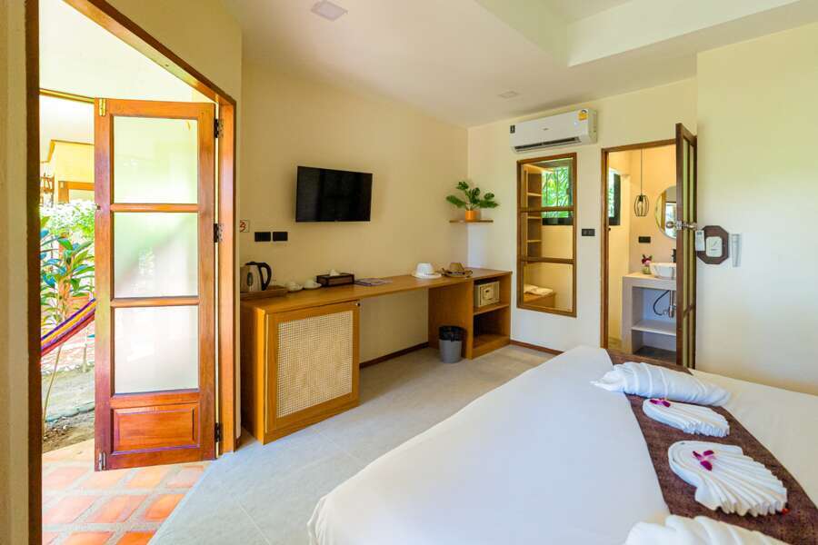 Les 24 chambres, fonctionnelles et aménagées avec goût, sont équipées de climatisation, ventilateur, TV, accès internet, minibar, salle de bains avec douche/WC et séchoir. Chaque chambre dispose en plus d’une terrasse meublée avec hamac et vue sur la piscine.