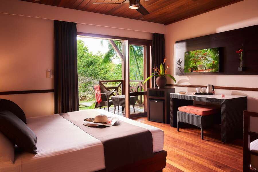 Die insgesamt 80 Zimmer und Bungalows liegen in der Anlage verteilt und verfügen über Bad/Dusche, Klimaanlage, TV, Telefon sowie Meersicht. Sie unterteilen sich in 14 Standard Zimmer, 16 Guetali Zimmer mit Kitchenette in einem separaten Gebäude mit eigenem Pool, 20 Tropic Bungalows mit Kühlschrank in freistehenden Bungalows, 20 Bungalows mit Kitchenette und 10 Family Bungalows.