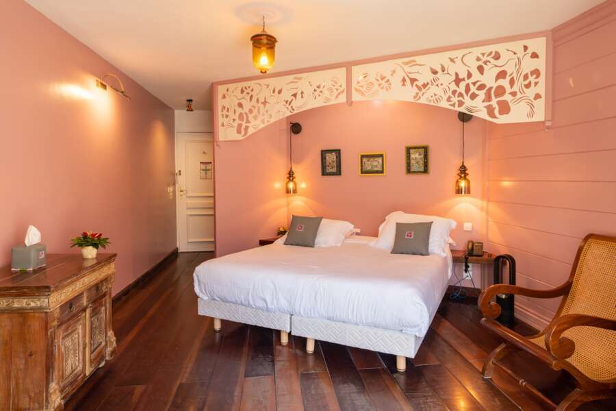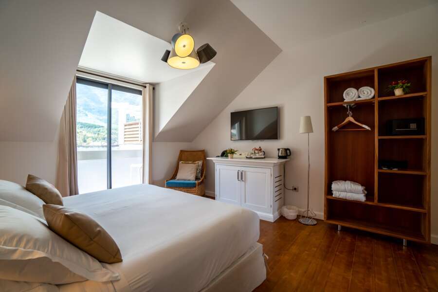 Die 19 Zimmer unterteilen sich in 10 Superior Zimmer (25 m²), 8 Deluxe Zimmer (27 m²) sowie eine Junior Suite (49 m²) und liegen im typisch kreolischen Hauptgebäude. Sie sind mit viel Holz und Charme eingerichtet und verfügen über Dusche, Heizung, Telefon, TV, Haartrockner, Safe, Minibar und Balkon oder Terrasse mit Blick auf die wunderschöne Bergwelt.