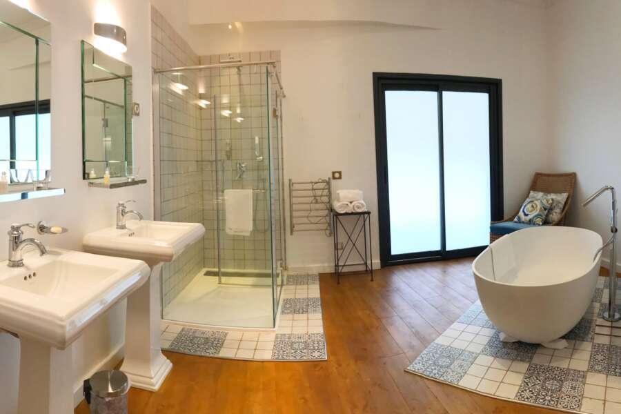 Dieses familiäre Hotel verfügt über ein Restaurant sowie einen Teesalon, welcher nachmittags Crêpes und Kuchen serviert und im hauseigenen Weinkeller können abends feine Tapas genossen werden. Des Weiteren gehören eine Kunstgalerie, Terrasse mit Jacuzzi, Parkplätze und kostenloses Wi-Fi zur Unterkunft.
