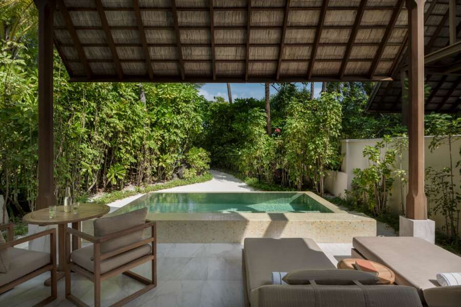 Die 35 Beach Villas (150 m²) sind von einem Garten umgeben, der Privatsphäre bietet. Sie haben einen direkten Zugang zum Strand sowie ein maledivisches Badezimmer.
