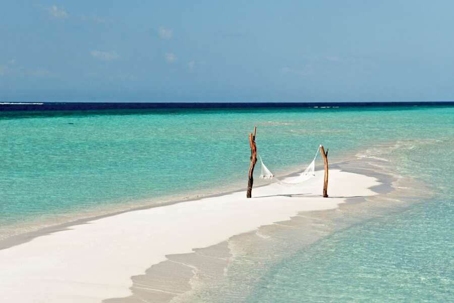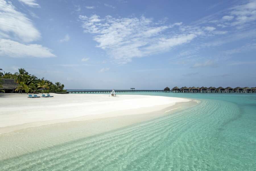 Die 17 Sand Villas (66 m²) sind auf Stelzen gebaut und liegen auf der Sandbank am Strand. Sie verfügen über ein geschlossenes, klimatisiertes Badezimmer mit Aussendusche.