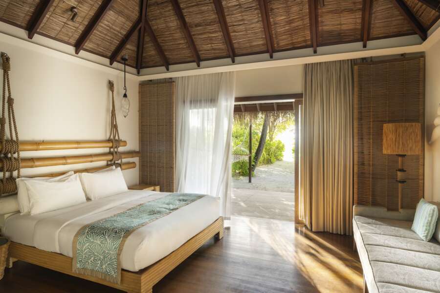 Die 24 Beach Villas (57 m²) befinden sich an direkter Strandlage und verfügen über ein halboffenes Badezimmer mit Dusche sowie eine Aussendusche, Haartrockner, Klimaanlage, Deckenventilator, Apple Mac Mini Entertainment-System, LCD-Fernseher, Telefon, Safe, Minibar, Nespresso-Maschine, sowie eine Terrasse mit Liegestühlen.