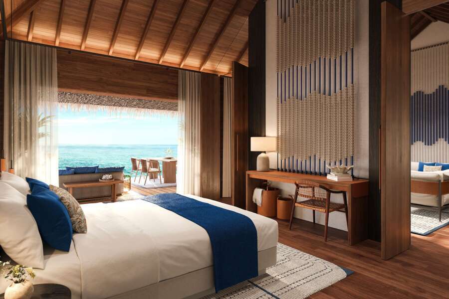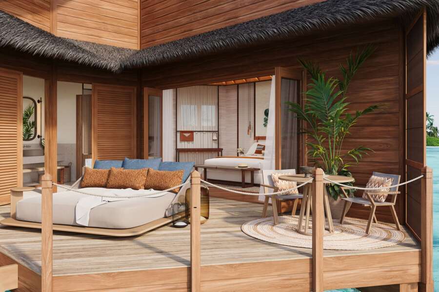 Die 2-bedroom Water Suite (160 m²) befindet sich auf Stelzen und offeriert idealen Zugang zum Riff. Sie verfügt über 2 Schlafzimmer und einen Wohnbereich.