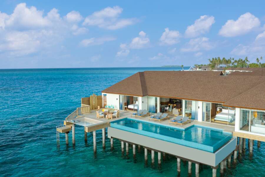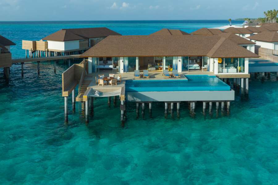 Ausserdem gibt es 2 2-bedroom Overwater Pool Residences (287 m², Pool 28 m²) und eine 3-bedroom Sunset Overwater Pool Residence (368 m², Pool 28 m²) am Ende des Stegs.