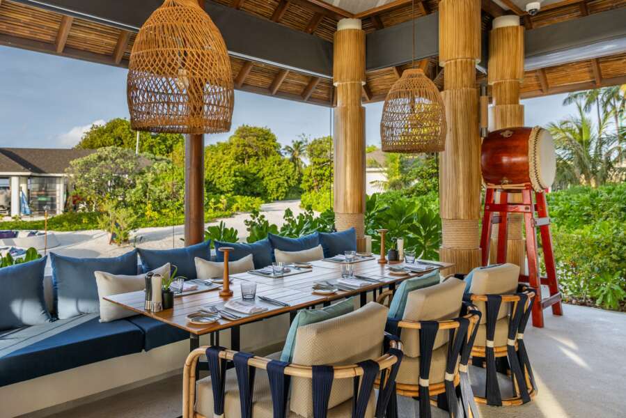 Hauptrestaurant «Ocean Terrace» mit internationalen Speisen in Buffetform, Grillrestaurant «Charcoal», Pizzas am Pool werden im «Skipjacks Beachclub» serviert, «Tribe» unter freiem Himmel direkt am Strand mit Gerichten zum Teilen, «Hammock» mit Snacks und Take-away-Konzept, «Smuggler's Shack» mit Tapas sowie Kinderrestaurant «Petit Bistro». Swimmingpool, AvaniSpa mit Dampfbad und Sauna, Souvenirshop, kostenloses WiFi im gesamten Resort, medizinisches Fachpersonal auf der Insel, regelmässig Abendunterhaltung.