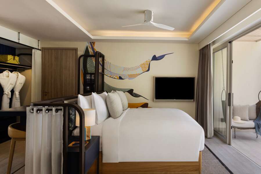 Die 176 Unterkünfte sind modern, stilvoll und komfortabel eingerichtet. Sie verfügen über Klimaanlage, Deckenventilator, Safe, Minibar, Kaffee-/Teezubereitungsmöglichkeiten, Wasserkocher, Bluetooth-Soundbar, TV und Sitzecke.