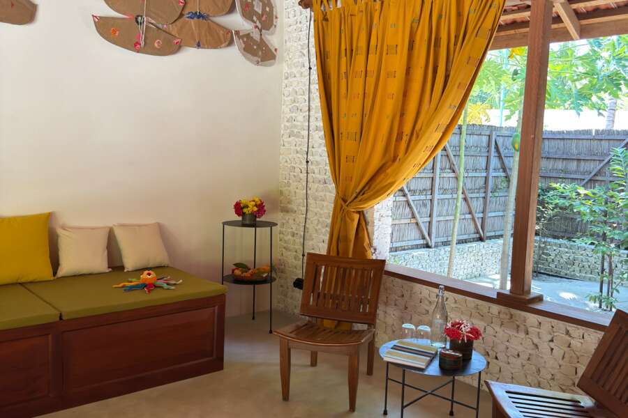 Zudem gibt es etwas abseits der Hotelanlage 5 authentische Heritage Villas (100 m²), welche traditionellen, maledivischen Wohnhäusern nachempfunden sind. Sie bieten zusätzlich ein offenes Wohnzimmer und einen privaten Garten und liegen nur wenige Schritte vom eigenen Strandabschnitt entfernt.
