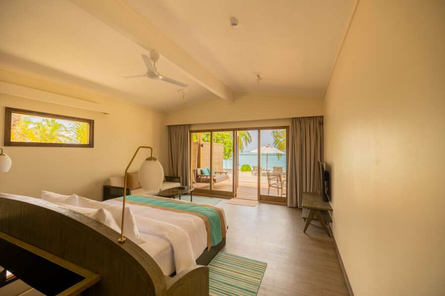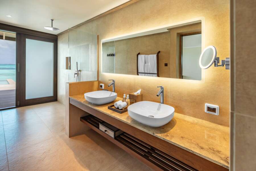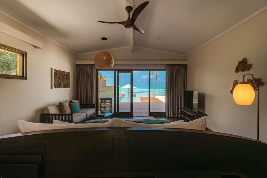 Die 30 Ocean Pool Villas (119 m²) sind in die Lagune gebaut, durch einen Steg mit der Insel verbunden und bieten direkten Zugang ins Meer. Sie haben ein geschlossenes Badezimmer.