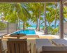 Die 27 Water Front Villas (60 m²) stehen direkt am Strand. Das halboffene Badezimmer hat ein privates Sonnendeck mit Jacuzzi.