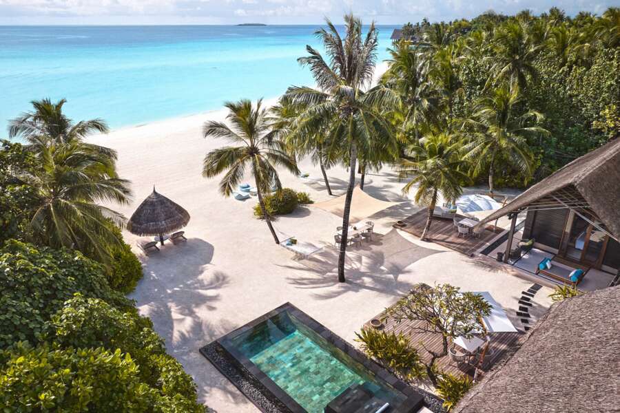Die 21 Beach Villas (185 m² Gesamtfläche) sind direkt am Strand gelegen, mit natürlichen Materialien gebaut, elegant und modern eingerichtet mit grossem Bad mit Badewanne und Aussendusche und haben eine möblierte Sonnenterrasse und einen privaten Strandabschnitt mit Liegebetten und Hängematte.