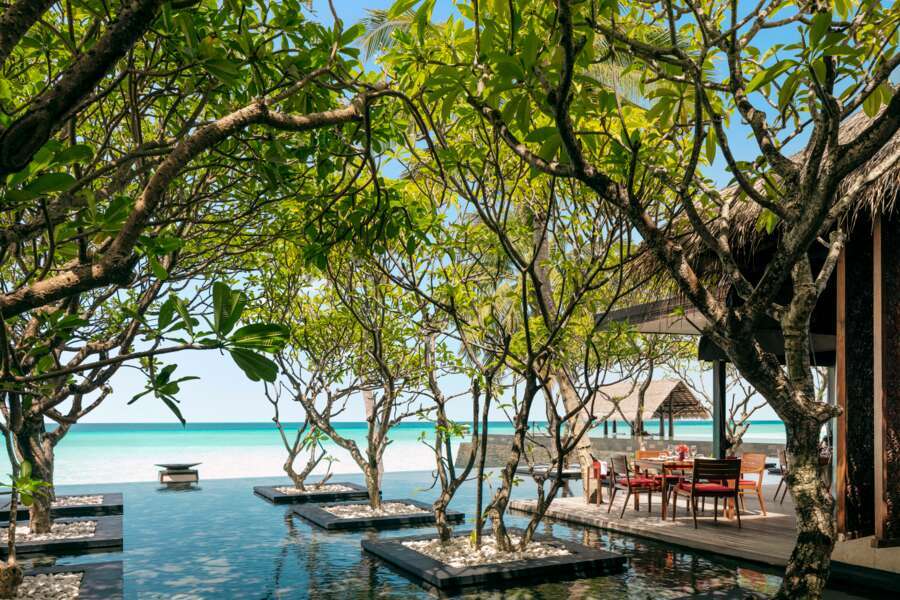 Hauptrestaurant «Reethi» für Frühstück, welches sich abends in 3 Restaurants verwandelt – das mediterrane «Earth», das von der französichen Riviera inspirierte «Aqua» und das der pan-asiatischen Küche gewidmete «Fire». Mittags ist neben dem Strandrestaurant «The Beach Club» das italienische «Rabarbaro» mit Pizza und leichten Snacks beim Pool geöffnet, abends stehen den Gästen ausserdem folgende Restaurants zur Auswahl: «Tapasake», ein Restaurant mit modernen japanisch-mediterranen Köstlichkeiten, «Fanditha» mit Spezialitäten aus dem mittleren Osten sowie «Botanica» mit frischen, biologischen Produkten aus dem hoteleigenen Kräuter- und Gemüsegarten. Weiter verfügt das Resort über 5 Bars, Swimmingpools, One&Only Spa, Chi-Pavillon, Schönheitssalon by Bastien Gonzales, kostenloses Wi-Fi sowie eine Boutique.