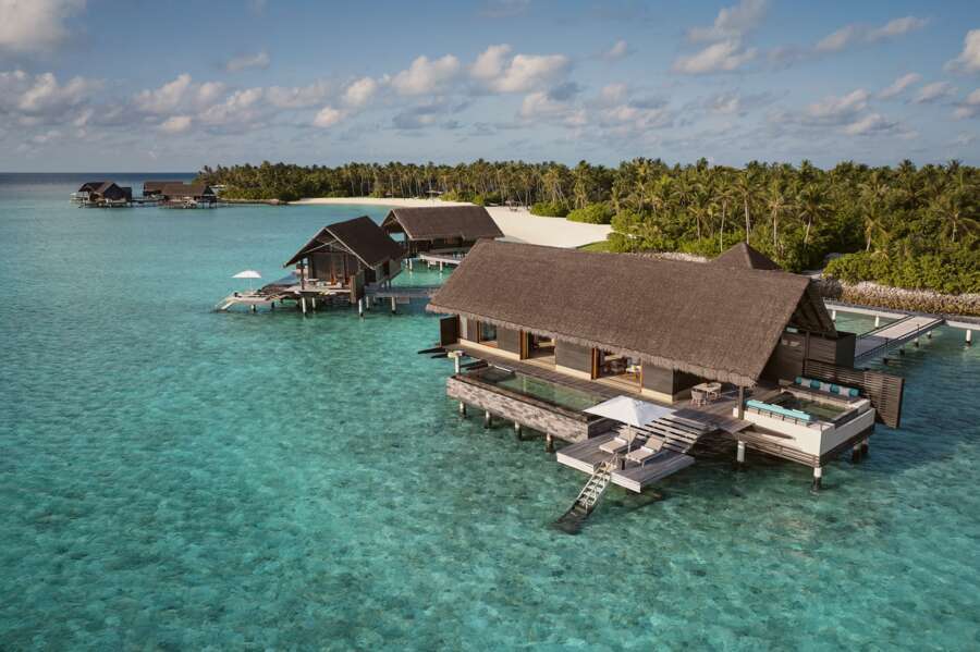 Die 6 Water Villas mit Pool (202 m² Gesamtfläche) verfügen zusätzlich über einen Pool (23 m²) auf der Terrasse.