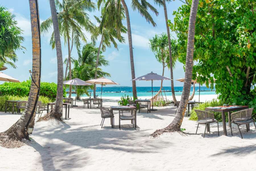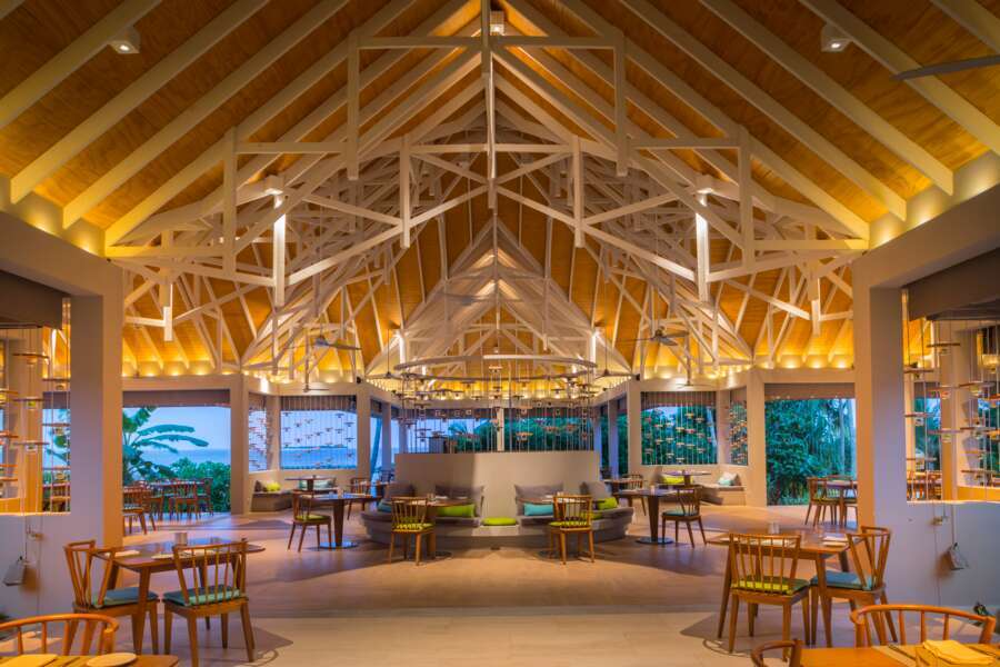 Hauptrestaurant «Capers» mit internationaler Küche mit einheimischen Einflüssen, «Jade» serviert asiatische Fusion-Gerichte, «Faru» verwöhnt mit mediterranen Fleisch- und Fisch-Spezialitäten, Gerichte mit orientalischen Gewürzen sowie Einflüssen aus Sri Lanka und den Malediven werden abends im «Battuta» serviert und im «The Café» gibt es Feingebäck und Kaffeespezialitäten. Eine kleine Take-away-Pizzeria zaubert traditionelle und einzigartige Pizza-Spezialitäten, die jeden Appetit befriedigen. 2 Bars; die «Haali»-Bar, einem einheimischen Vogelnest nachempfunden, besticht durch unbeschreiblich schöne Ausblicke gerade bei Sonnenuntergang sowie die «East»-Bar mit 2 Swimmingpools und Kinderbecken, Boutique, Babysitting, Wäscheservice, kostenloses Wi-Fi im ganzen Resort, täglich Abendunterhaltung, medizinisches Fachpersonal auf der Insel.
