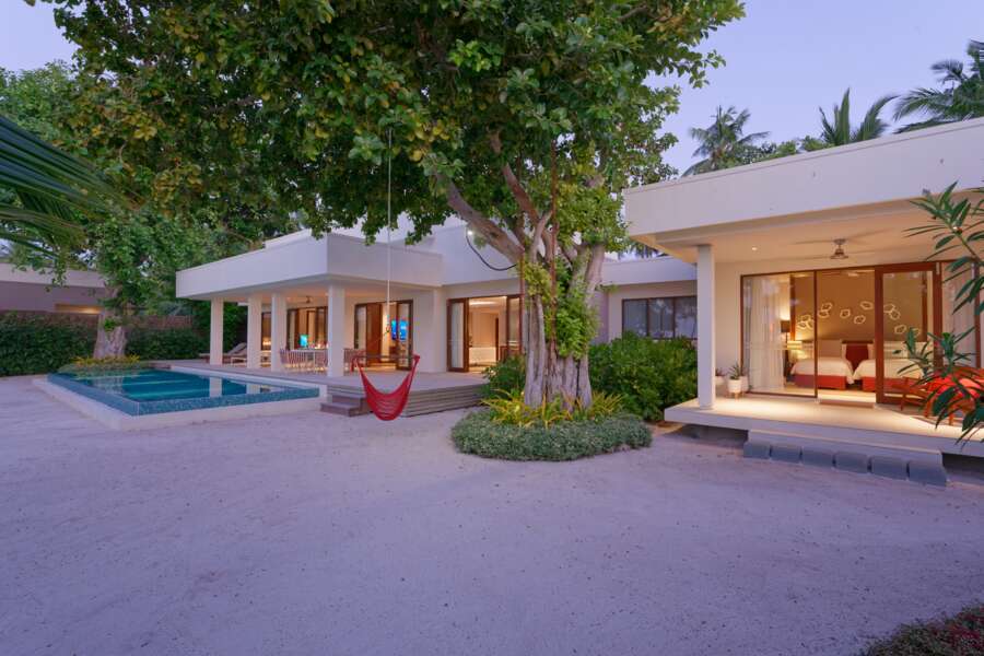 Weiter gibt es 2 Beach Villas Garden Pool (121 m²) und 1 Beach Suite Garden Pool (170 m²) mit einem Pool im privaten Garten sowie 2 Beach Suites mit Pool (170 m²) und 1 2-bedroom Dhigali Suite (400 m²).