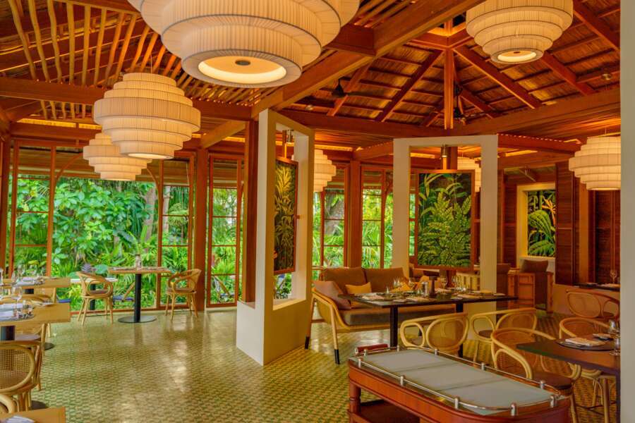 3 Hauptrestaurants mit Buffets, aufgeteilt nach Lage der Zimmer, 9 A-la-carte-Restaurants mit internationalen, indischen, thailändischen, Seafood- und Grillspezialitäten, Teppanyaki sowie mediterranen Köstlichkeiten. 8 Bars sorgen für Unterhaltung mit wechselndem Programm. 3 Swimmingpools, Kids Club mit Kinderpool, Babysitter-Service auf Anfrage, Spa mit 13 Behandlungsräumen davon 3 Überwasser, Shops, medizinisches Fachpersonal auf der Insel, Coiffeur, Wi-Fi kostenlos in den Zimmern sowie in einigen öffentlichen Bereichen, Wäscherei.