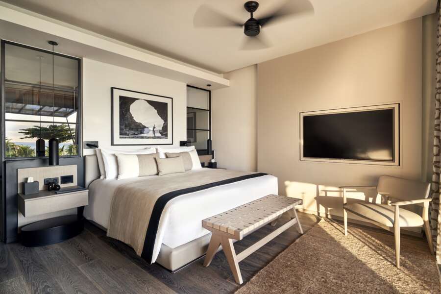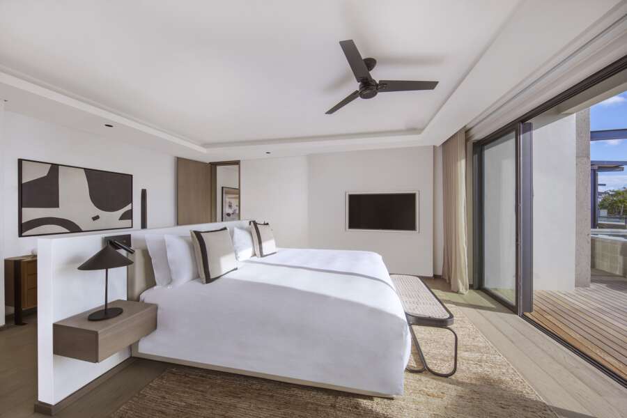 Die 116 Suiten, Villen, Penthouses und Residences sind Werke der bekannten Innenarchitektin Kelly Hoppen. Sie sind hell, luftig, modern und stylish und lassen Sie sich direkt wie zu Hause fühlen. Alle Zimmer sind ausgestattet mit Klimaanlage, Badezimmer mit Regendusche und freistehender Badewanne, separatem WC, Minibar, Tee- und Kaffeezubereitungsmöglichkeit, Flachbildschirm TV, Safe, Balkon oder Terrasse sowie kostenlosem Wi-Fi. Die 60 Junior Suites (65 m²) bieten allesamt Meerblick und im Hauptgebäude verteilt, umgeben von tropischer Flora. Die 26 Ocean Junior Suites befinden sich in der obersten Etage des Hauptgebäudes. Die 10 Family Suites (130 m²) aus zwei Junior Suiten sind über einen Gang miteinander verbunden. Die 20 Pool Residences (180 m², 2 Schlafzimmer) sowie die beiden Pool Penthouses (325 m2 mit 3 Schlafzimmer) liegen geschützt im hinteren Teil der Anlage, verbunden mit einer Brücke zum Hauptgebäude und bieten viel Privatsphäre und einen individuell beheizbaren Privatpool. Zusätzlich verfügt das Resort über 4 Pool Villas sowie 3 Beachfront Pool Villas (240 m² mit 2 Schlafzimmer) und die LUX* Grand Beach Villa (600 m² mit 3 Schlafzimmer), welche ebenfalls über einen individuell beheizbaren Privatpool, Wohn- und Essraum sowie grosszügigen Garten verfügen. Gäste in den Residences, Villen und Penthouses profitieren zudem von einem Butler-Service.