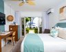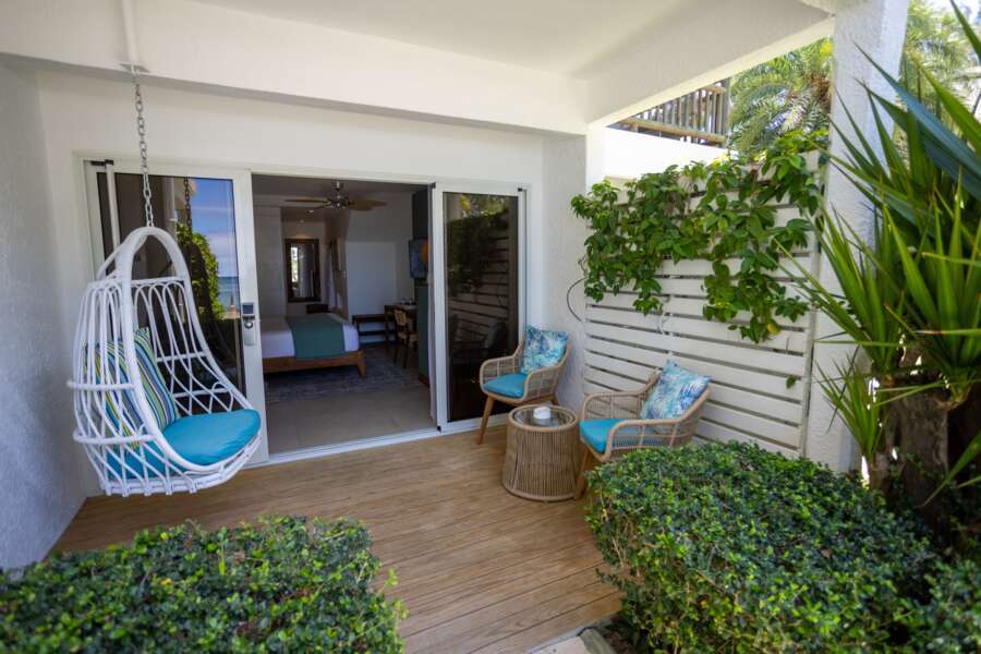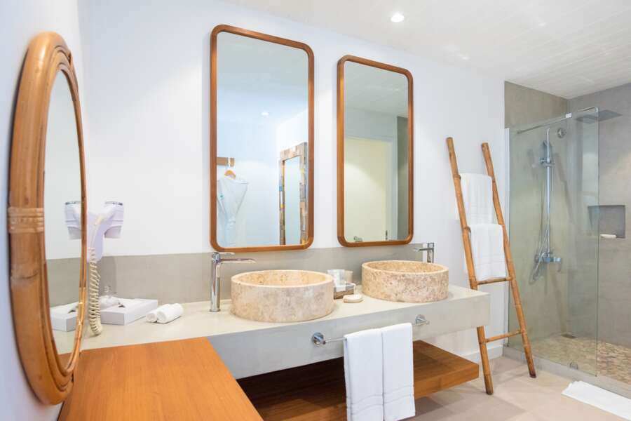 Die insgesamt 22 Zimmer sind alle zum Meer gerichtet und befinden sich in zwei doppelstöckigen Gebäuden, welche den Swimmingpool flankieren. Das Hotel verfügt über 10 Deluxe Beachfront Zimmer (35 m²), welche sich alle im Erdgeschoss befinden, 10 Ocean Suites (43 m²), welche in der oberen Etage liegen und mit grosszügigem Balkon ausgestattet sind, eine Royal Suite (90 m²) mit 2 separaten Schlafräumen und En-Suite-Badezimmer und Jacuzzi sowie eine Coin de Mire Villa (225 m²). Letztere bietet 2 Schlafzimmer, Wohnzimmer sowie Jacuzzi und erstreckt sich über 3 Etagen . Alle Zimmer sind modern und mit viel Liebe zum Detail gestaltet. Holz und warme Farben dominieren und alle sind mit Bad mit Dusche und separatem WC, Haarföhn, Flatscreen-TV, Klimaanalage, Minibar, Tee-/Kaffeezubereiter und Terrasse oder Balkon ausgestattet. Die Suiten bieten zudem eine Badewanne.