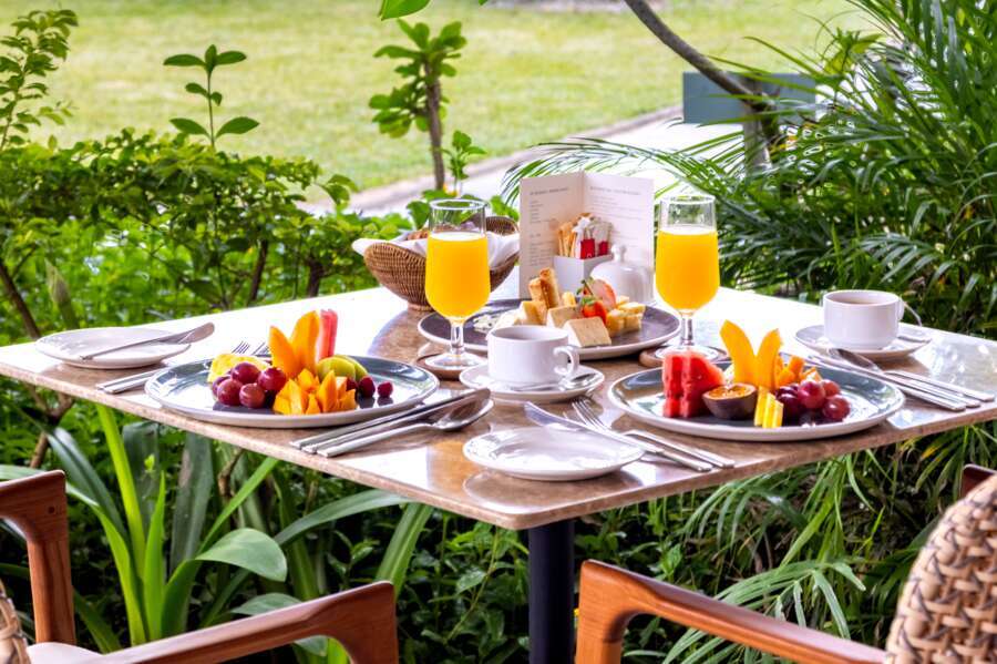 Die Gäste werden in den zwei Restaurants kulinarisch verwöhnt. Ein junger mauritischer Chefkoch und sein Team zaubern leckere, frische, lokale und internationale Speisen. Das Frühstück wird in Buffetform serviert und das Mittag- und Abendessen à la carte oder als Set-Menu. Alle Mahlzeiten können im Hauptrestaurant oder im Strandrestaurant mit den Füssen im warmen Sand eingenommen werden. An der Bar beim Swimmingpool können traditionelle Rum-Cocktails und gesunde, erfrischende Fruchtsäfte bestellt werden.