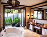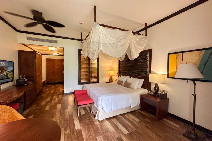 Die insgesamt 100 grosszügigen Suiten und Villen sind alle in einem exklusiven und eleganten Design entworfen und bieten anspruchsvollen Gästen jeglichen Komfort und Luxus. Die 46 Junior Suites with Balcony (55 m²) verfügen über ein offenes Badezimmer mit freistehender Badewanne und Dusche, WC, Haartrockner, Telefon, Minibar, Safe, Klimaanlage, Tee-/Kaffeekocher, TV und Balkon mit gemütlichen Tagesliegen und Sicht auf den gepflegten Garten. Die 38 Junior Suites with Garden Terrace (55 m²) verfügen über die gleichen Annehmlichkeiten wie die Junior Suites, jedoch zusätzlich über eine private Terrasse mit Zugang zum Garten. Einige Junior Suites verfügen über eine Verbindungstüre und sind als Family Suites (110 m²) ideal für Familien. Die 14 traumhaft gelegenen Beach Pool Villas (150 m²) bieten neben direktem Zugang zum Strand, zusätzlich einen privaten Pool und einen Freiluft-Pavillon sowie eine Espresso-Maschine und eine Outdoor-Regendusche. Zusätzlich stehen 2 Grand Beach Pool Villas (250 m²) und 2 Family Grand Beach Pool Villas (400 m²) zur Verfügung.