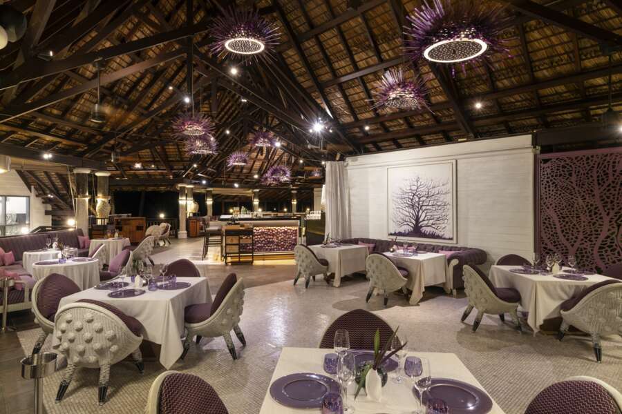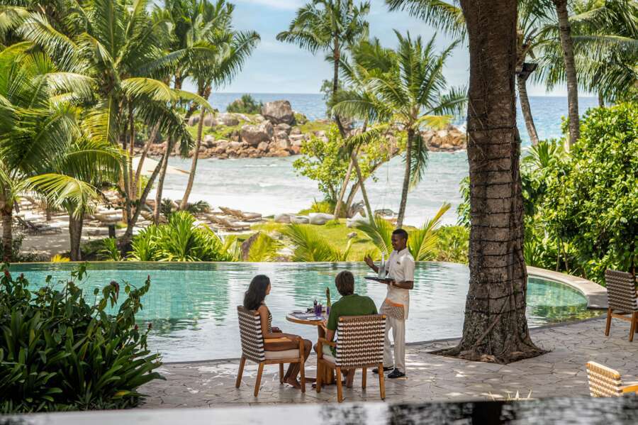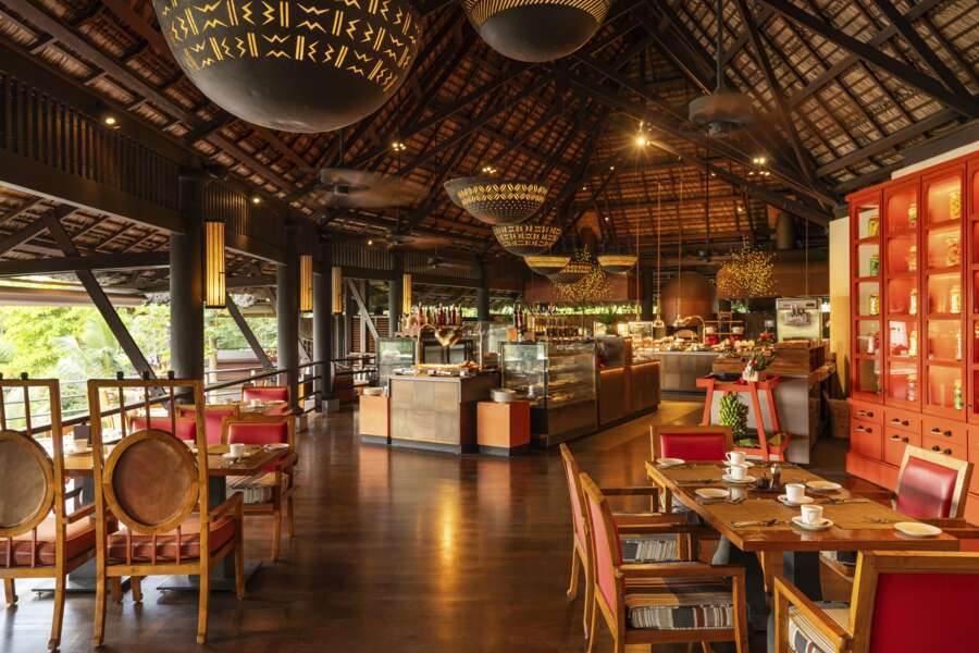 Das Hotel bietet feine Gerichte, die traditionelle Rezepte mit Aromen der modernen zeitgenössischen Küche der Seychellen verbinden. Das halboffene Hauptrestaurant «Legend» mit atemberaubender Aussicht auf das Meer, das Restaurant «Diva» beim Golfplatz mit modern inspirierter Seychellen-Küche, das «The Nest» thront an den Felsen über dem Strand Petit Anse Kerlan und bietet Meeresfrüchte und lokale Gerichte und die «Takamaka Bar» an der Petit Anse Kerlan, wo Sie leichte Mittagsgerichte und Cocktails geniessen können.