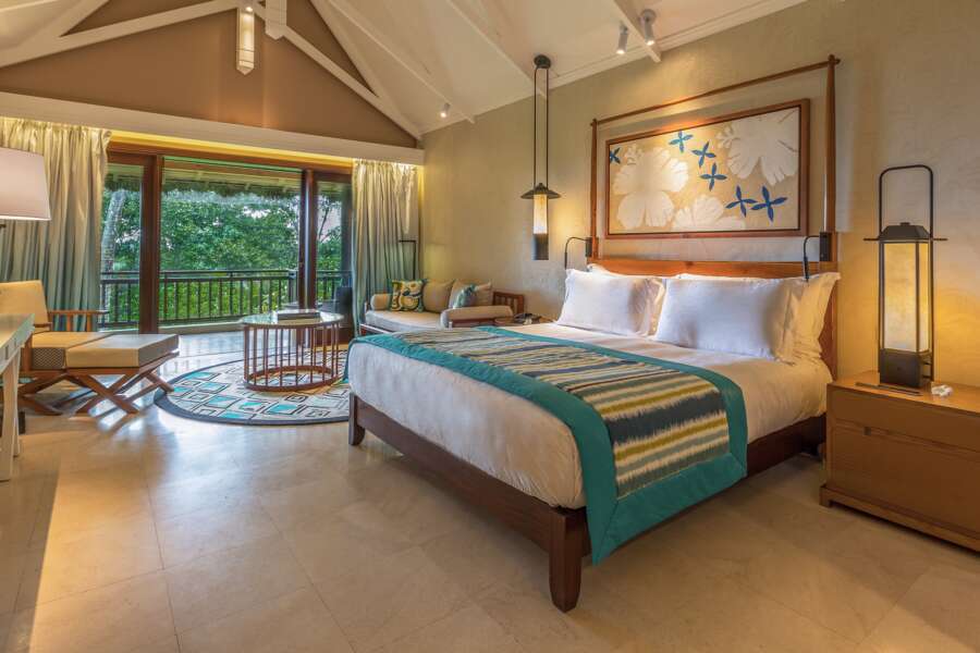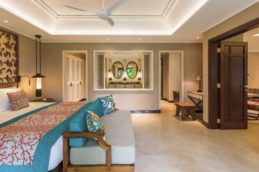Die 88 Junior Suites (52 m²), inmitten eines üppigen Gartens, verfügen über Bad mit separater Dusche und WC, Badewanne, Doppelwaschbecken, Nespresso-Kaffeemaschine, Klimaanlage, Satelliten-TV mit Flachbildschirm, Telefon, WLAN-Internetanschluss, Minibar, Wasserkocher, Safe, Haartrockner, Balkon oder Terrasse. Die 8 Senior Suites (115 m²) bieten zusätzlich eine Whirlpool-Badewanne und ein Wohnzimmer mit Lounge sowie doppelt so grosse Terrasse oder Balkon. Die 8 Pool Villas mit 2 Schlafzimmern (725 m²) und die Presidential Villa mit 3 Schlafzimmern (1250 m²) sind mit einer grosszügigen Lounge, einem Bad mit Innen- und Aussendusche, Aussenpavillon und privatem Pool sowie einem privaten Massagepavillon ausgestattet. Ein Butler steht den Gästen der Villas, welche jeden erdenklichen Komfort für höchste Ansprüche bieten, zur Verfügung.
