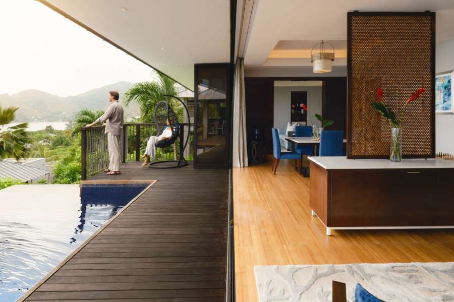 Die 19 Hillside Garden View Pool Villas (125 m²) haben ihren Standort am Hügel inmitten tropischer Vegetation, durch diese man viel Privatsphäre geniesst. Die 31 Ocean View Pool Villas (125 m²) bestechen mit einer atemberaubenden Aussicht über die Bucht und die vor Praslin liegenden Inseln. Am höchsten Punkt der Anlage befinden sich die 24 Panoramic Pool Villas (125 m²), aus welchen dem Namen entsprechend ein phänomenales Panorama genossen wird. Diese Kategorien verfügen entweder über 1 Kingsize-Bett oder 2 Doppelbetten. Die 2 Grand Hillside Garden View Pool Villas, die 3 Grand Ocean View Pool Villas sowie die 3 Grand Panoramic Pool Villas (alle 200 m²) verfügen zudem über ein Wohn- und Esszimmer, eine Küche und einen Grill auf der grossen Veranda. Für absolute Privatsphäre und Luxus stehen die je 2 2-bedroom Ocean View Pool Villas und 2 2-bedroom Beachfront Pool Villas (beide 275 m²), welche über 2 Schlafzimmer und 2 En-Suite-Badezimmer verfügen. Die 4-bedroom Pool Residence (460 m²) bietet Platz für bis zu 8 Personen und verfügt über einen atemberaubenden Meerblick. Allen Gästen der Kategorie Grand Hillside Pool Villa, Grand Ocean View Pool Villa, Grand Panoramic Pool Villa, 2-bedroom Ocean View Pool Villa, 2-bedroom Beachfront Pool Villa und 4-bedroom Pool Residence steht ein kostenloser Butler-Service zur Verfügung.