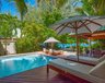 Versteckt im tropischen Garten befinden sich die 23 frei stehenden Bungalows, die über ein offenes Bad mit Aussendusche, WC, Klimaanlage, Ventilator, Moskitonetz, Tee-/Kaffeekocher, Kühlschrank, Bügeleisen/-brett, Haartrockner und eine Terrasse mit Meerblick und direktem Strandzugang verfügen. Es gibt vier verschiedene Bungalow-Kategorien: 3 Beach Cottages, welche sich am nahesten zum Strand befinden (90 m²), 10 Deluxe Beach Cottages (130 m²), welche mit einem Tagesbett unter einem Vordach ausgestattet sind. Die 9 Beachfront Spa Cottages (150 m²) verfügen über ein Tagesbett und einen Platz für Massagen im offenen Badezimmer. Die Deluxe Beach Cottages und Beachfront Spa Cottages liegen im privaten grosszügigen Garten, etwas zurückversetzt vom Strand. Die Beach Villa (325 m²) ist erhältlich auf Anfrage und verfügt über einen zum Meer gerichteten Pavillon mit Essbereich, Pool und Entspannungs-Bett.