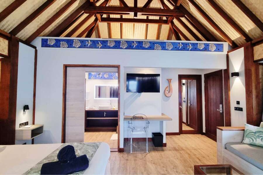 Die Bungalows verfügen zusätzlich über einen Deckenventilator und alle Overwater Bungalows verfügen einen direkten Einstieg ins Wasser.