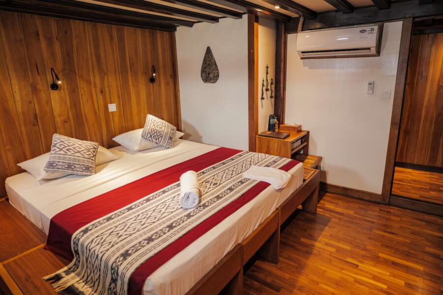 5 komfortable Doppelkabinen (14 m²) und 2 Einzelkabinen (11 m²) befinden sich im Unterdeck, 4 weitere Doppelkabinen (13 m²) auf dem Oberdeck. Natürlich sind alle mit Klimaanlage und privatem Bad mit Dusche/WC ausgestattet. Bei einem Vollcharter sind Dreier-Belegungen möglich, so dass eine Gruppe von maximal 20 Gästen den Service und Komfort der Amira geniessen können.