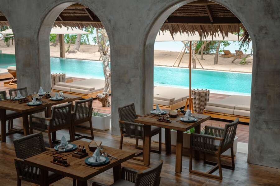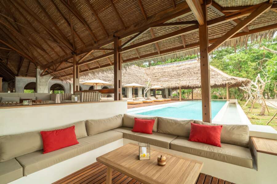Das Herzstück des Resorts bildet das Restaurantgebäude mit stilvoller Lounge, Bar und einem Pool mit komfortablen Sonnenliegen. Hier geniessen die Gäste à la Carte servierte Gerichte aus der italienischen und indonesischen Küche. Die Gästeunterkünfte liegen beidseitig entlang des Strandes. Ergänzt wird das Angebot durch ein weiteres, grösseres Gebäude mit mehreren Gästezimmern im Obergeschoss und einer weitläufigen Gemeinschaftsterrasse mit traumhaftem Meerblick. Im Erdgeschoss laden eine kleine Bibliothek, ein Souvenirshop und gemütliche Aufenthaltsbereiche zum Verweilen ein. Versteckt im idyllischen Hotelgarten befindet sich der exklusive Spa-Pavillon – ein Ort der Ruhe und Entspannung. Kostenloses Wi-Fi steht in allen Gästezimmern und Gemeinschaftsbereichen zur Verfügung.