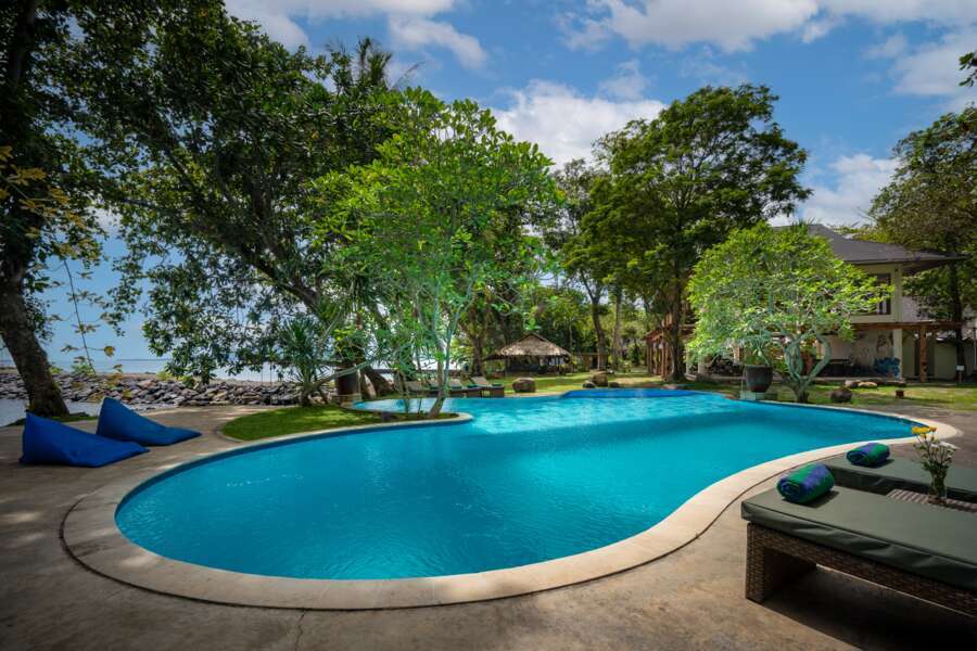 Im Zentrum der wunderschönen und gepflegten Gartenanlage trennt der Teich die Deluxe Bungalows vom Haupthaus, dem Pool, den Pool Side Bungalows und dem Restaurant. Die Mahlzeiten werden à la carte serviert und bei schönem Wetter kann das Frühstück direkt am Strand eingenommen werden.