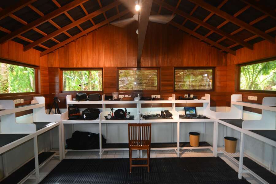 Infrastruktur Basis direkt am Steg mit 3 Spülbecken, Ausrüstungsraum, Kameraraum und zweimotorigen Fiberglasbooten für 8 bis 16 Personen.