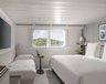 Die Explorer Suite auf dem Oberdeck (45 m²) hat zusätzlich eine riesige Fensterfront mit Panoramafenstern, eine Badewanne, ein gemütliches Sofa, einen Esstisch und ein privates Sonnendeck.